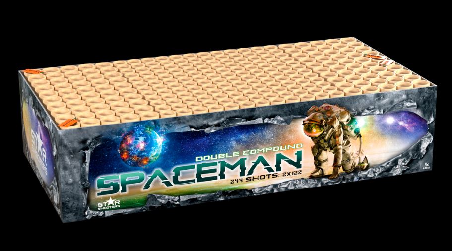 Was-eine-Box! Das ist wirklich nicht normal. Mega fetter Quattro-Verbund, 4 x 61 Schüsse! Wirklich die fettesten Kombinationen von Effekten und Farben. Diese Box ist komplett faszinierend und du wirst immer wieder über die schönsten Farbkombinationen staunen. Sieh dir das an, Spaceman!